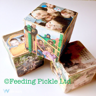 Homemade gift giving just went up a notch with this project. Designed for the more tween-aged Pickle crowd to create, this project also requires minimal tools and supplies to create a memorable keepsake gift. And what could be more memorable than pictures...on wooden blocks. Wooden Picture blocks!