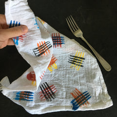 Instead of pressing our fork onto our peanut butter cookies to make the traditional criss-crossed pattern, we dipped our fork in paint and created the same pattern on dish towels!